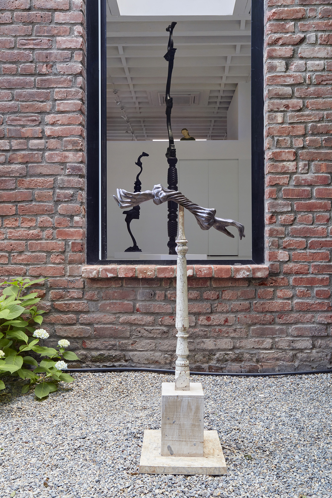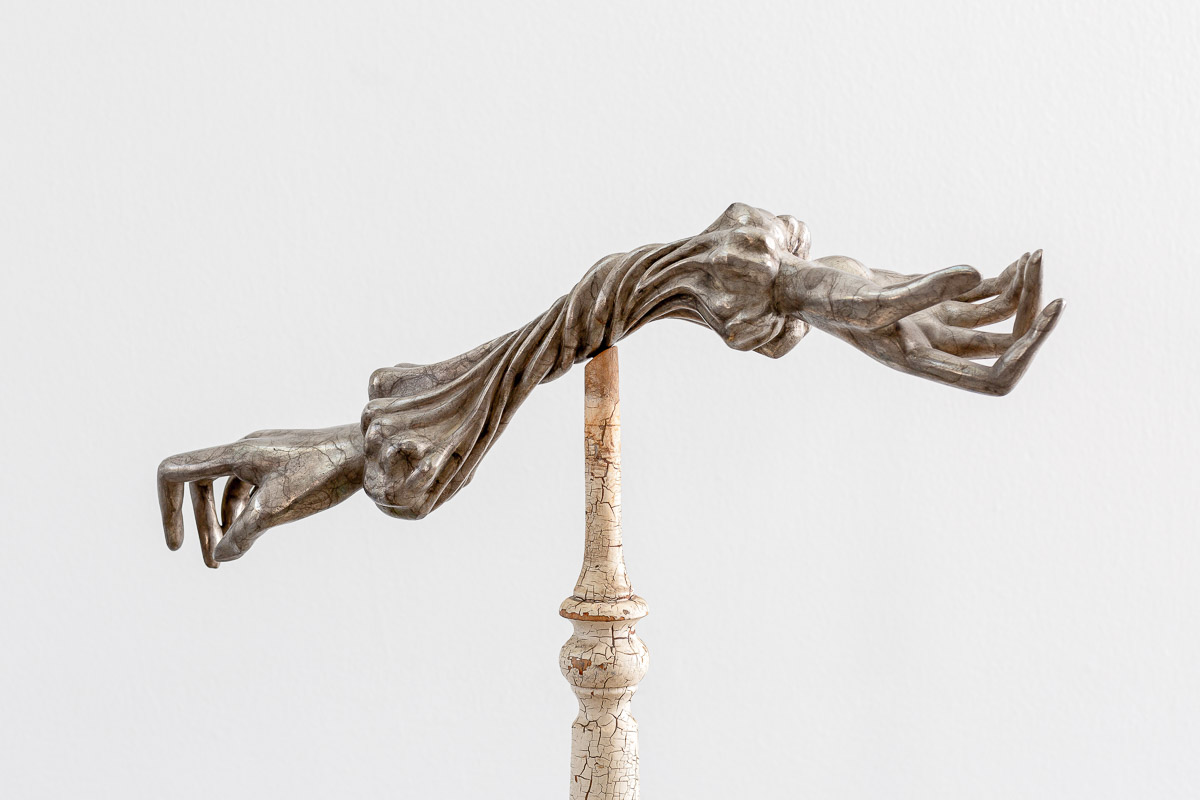 I first encountered Leslie’s work as a young college graduate who had just moved to Vermont. It was there I encountered one of her objects – a dress, or at least something that signified a dress, made in a way and of materials that were completely foreign to me. The object evoked both strength and fragility, hope, and also menace. I wasn’t particularly engaged with art at that point in my life, nor was I yet an object maker. Despite this, the object, the dress, stayed with me. I view Leslie’s practice as aligned to surrealism; drawing inspiration from mysticism, ancient cultures, the natural world, and the absurdities/horrors of the human condition. Her use of the quotidian, including architectural forms and organic elements conjure a kind of dreamscape inhabited by a species unknown to us. These hybrid forms seem ready to liberate themselves and summon the viewer to join with them in their journey rising above our daily rituals and travails. The surrealist’s aspiration towards the liberation of the mind as well as the liberation of artistic expression also meant seeking political freedom, and in many instances, political activism. Leslie has described her sculptures as illustrative of the female condition but I think that doesn’t go far enough for I see them as inherently political statements regarding our need for resourcefulness and alternative modes to address the complexities present in our world. Given the current political climate, in which basic human rights are under attack and human dignity is assailed on a daily basis, Leslie’s formal inventiveness and potent imagery move us to question our relationship to each other, our relationship to the natural world and our beliefs regarding gender roles and identity. Her work serves as a bulwark against the current political tide of fear and oppression we currently find ourselves in and offer a glimmer of hope for what could lie ahead.